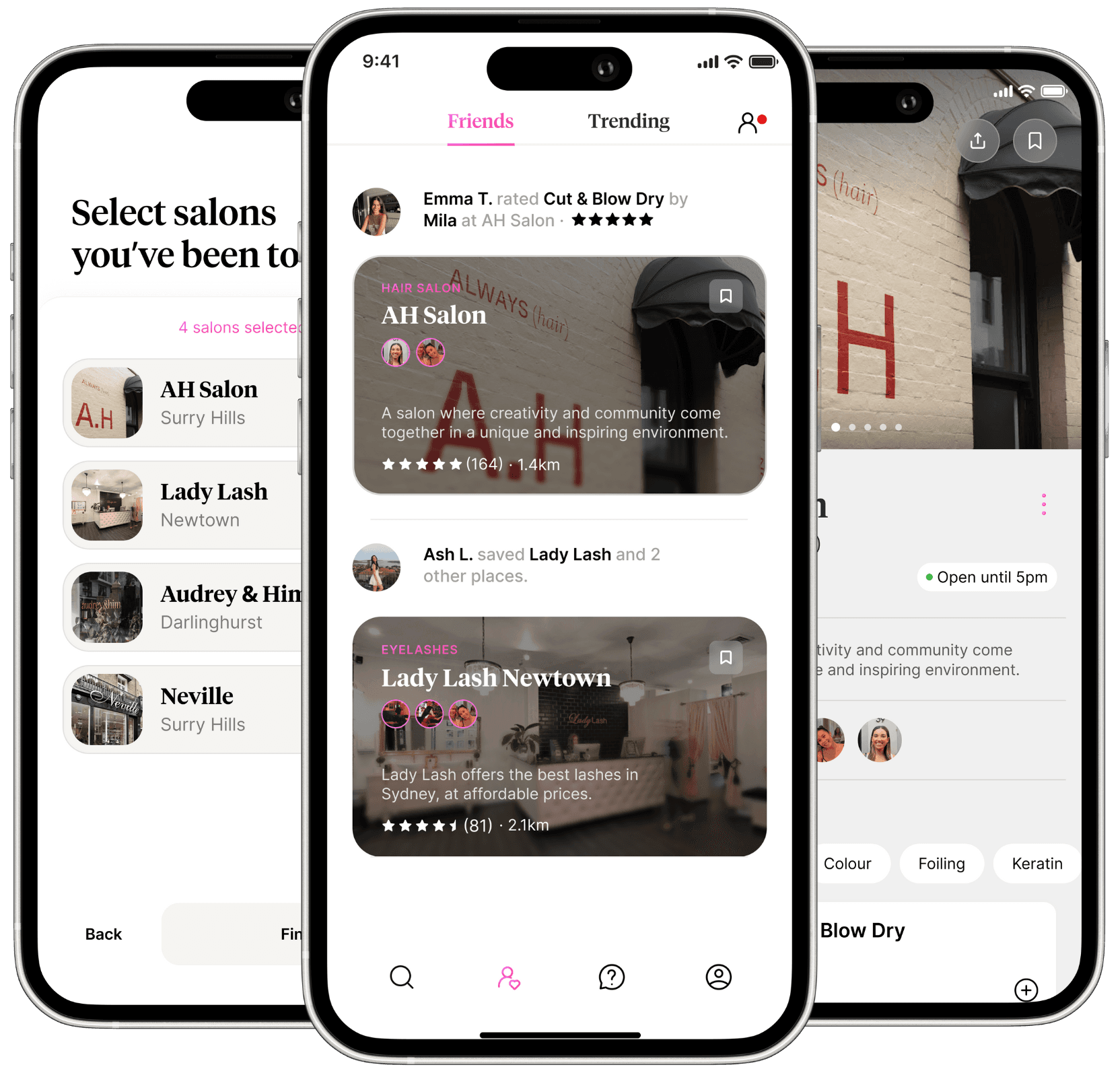 Inspired by the power of word of mouth, finding a trustworthy salon has never been easier. See where your friends are visiting and loving, so you can book your next appointment with confidence.